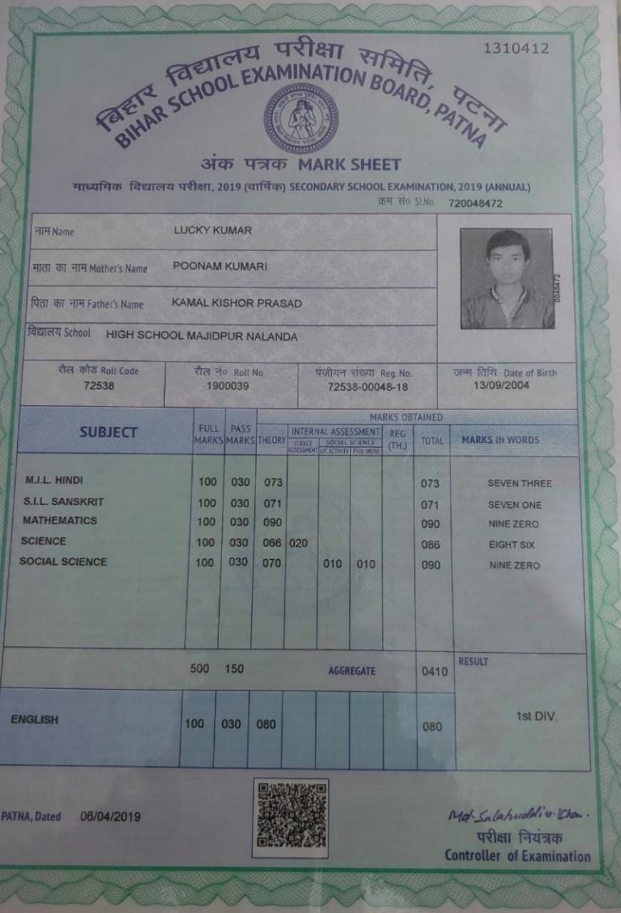 | Exam | Full Marks | Pass Marks | Marks Obtained |