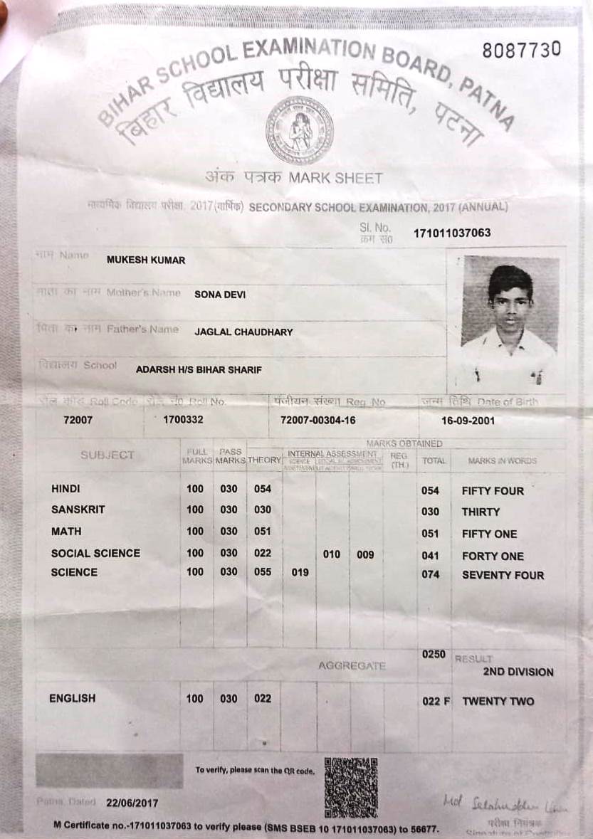 | Exam | Full Marks | Pass Marks | Marks Obtained |
