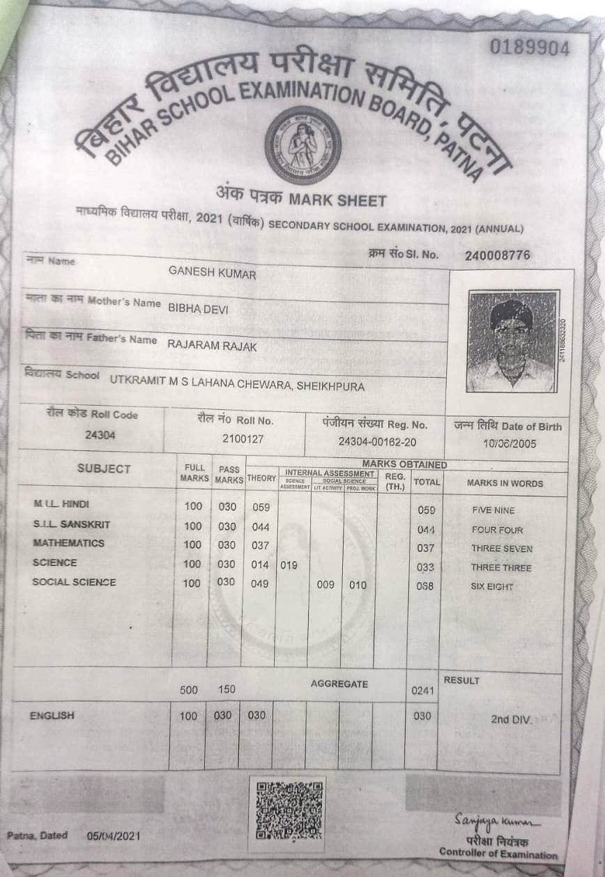 | Exam | Full Marks | Pass Marks | Marks Obtained |