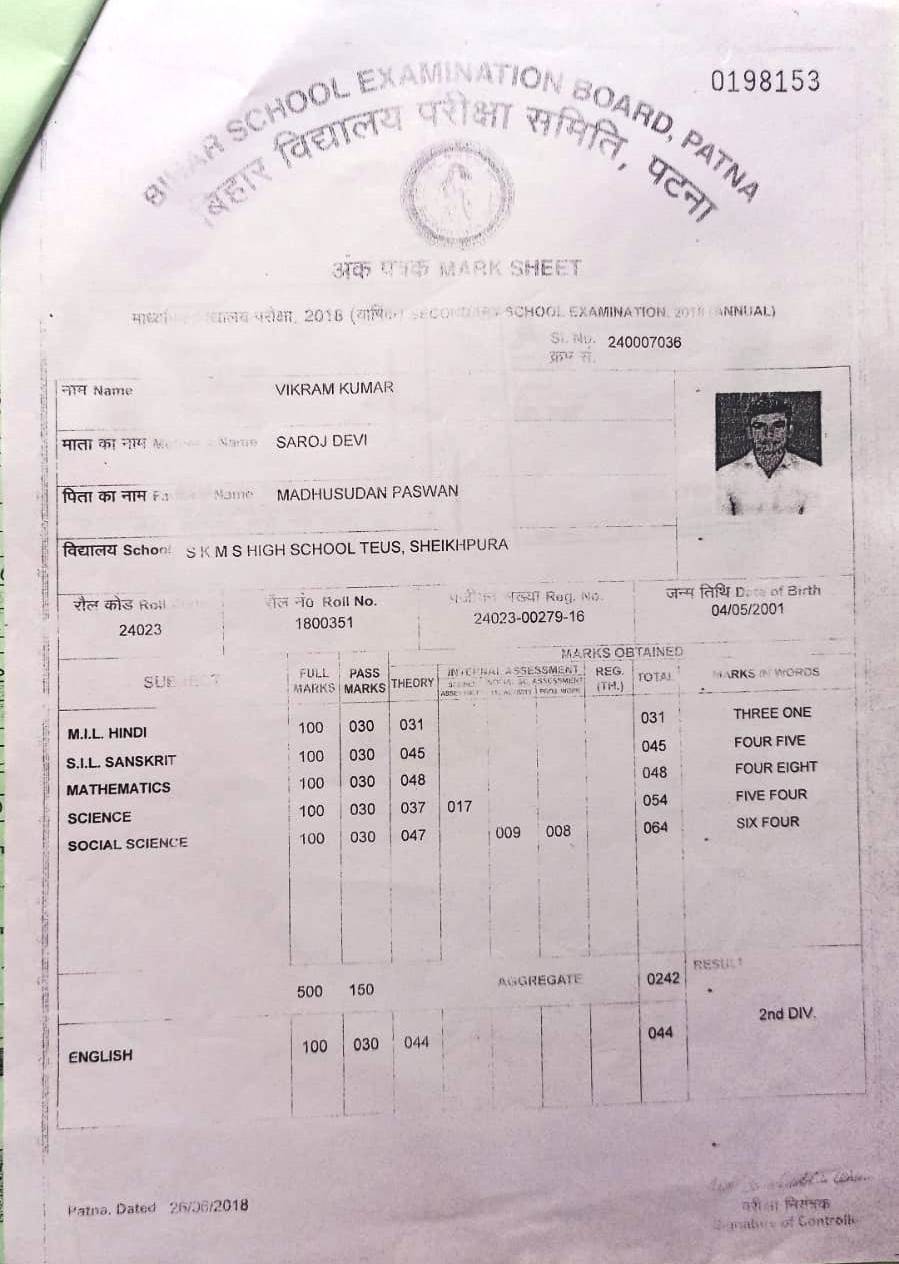 | Exam | Full Marks | Pass Marks | Marks Obtained |