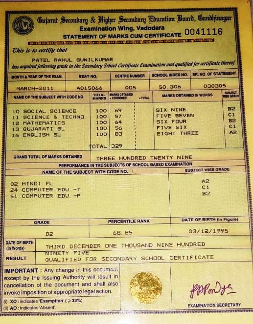 | Exam | Full Marks | Pass Marks | Marks Obtained |