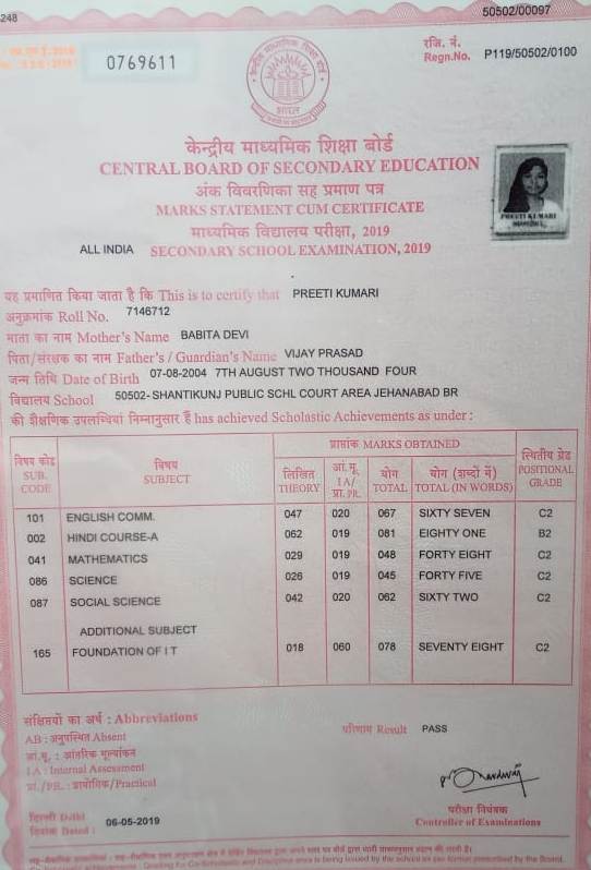 | Exam | Full Marks | Pass Marks | Marks Obtained |