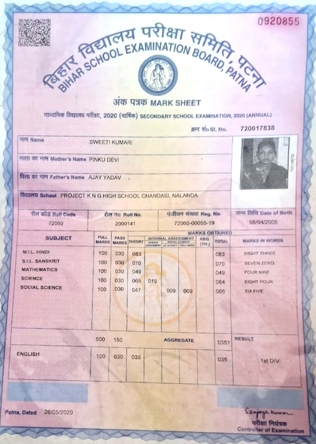 | Exam | Full Marks | Pass Marks | Marks Obtained |
