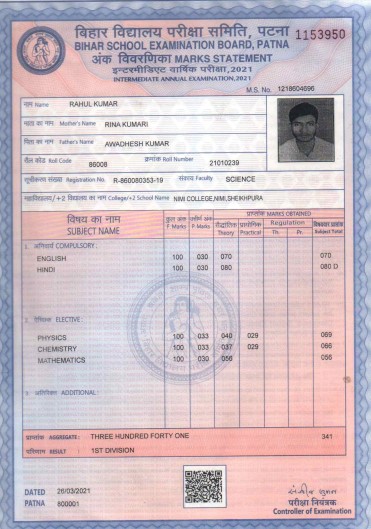 | Exam | Full Marks | Pass Marks | Marks Obtained |