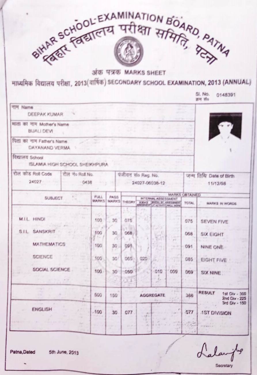 | Exam | Full Marks | Pass Marks | Marks Obtained |