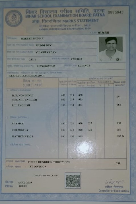 | Exam | Full Marks | Pass Marks | Marks Obtained |