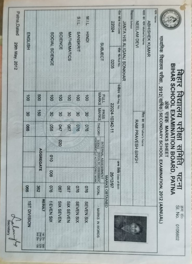 | Exam | Full Marks | Pass Marks | Marks Obtained |