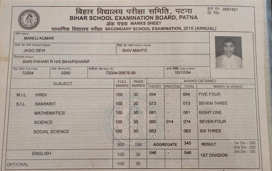| Exam | Full Marks | Pass Marks | Marks Obtained |