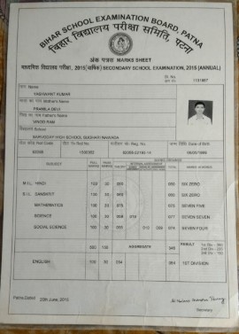 | Exam | Full Marks | Pass Marks | Marks Obtained |