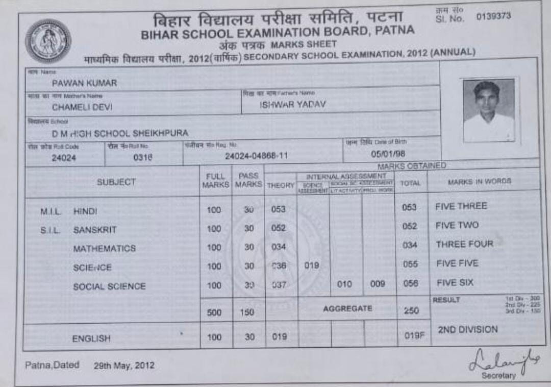 | Exam | Full Marks | Pass Marks | Marks Obtained |