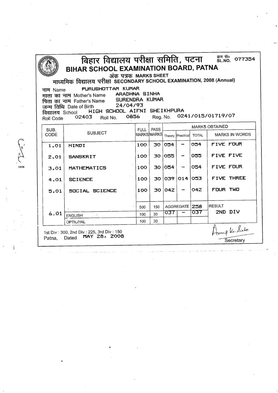 | Exam | Full Marks | Pass Marks | Marks Obtained |