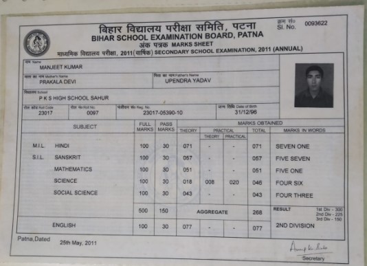 | Exam | Full Marks | Pass Marks | Marks Obtained |