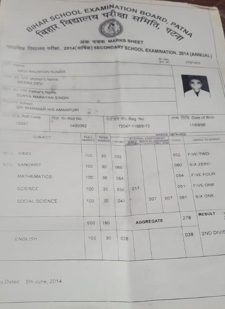 | Exam | Full Marks | Pass Marks | Marks Obtained |