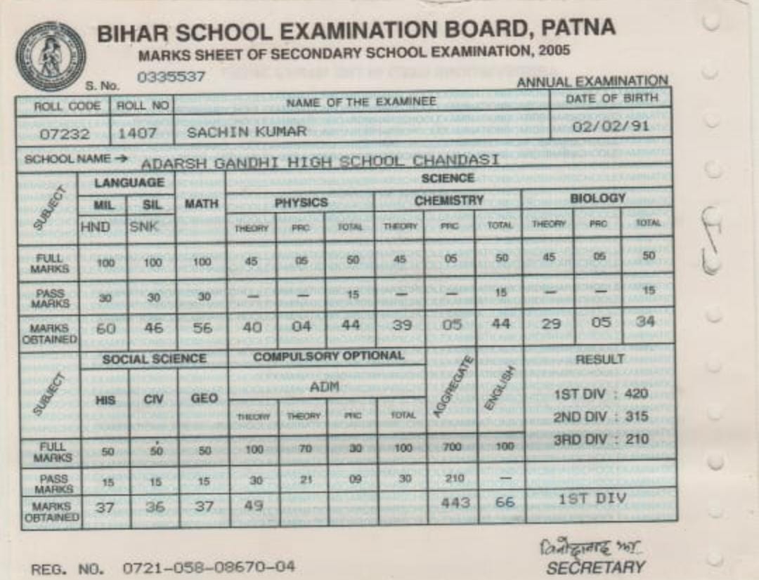| Exam | Full Marks | Pass Marks | Marks Obtained |