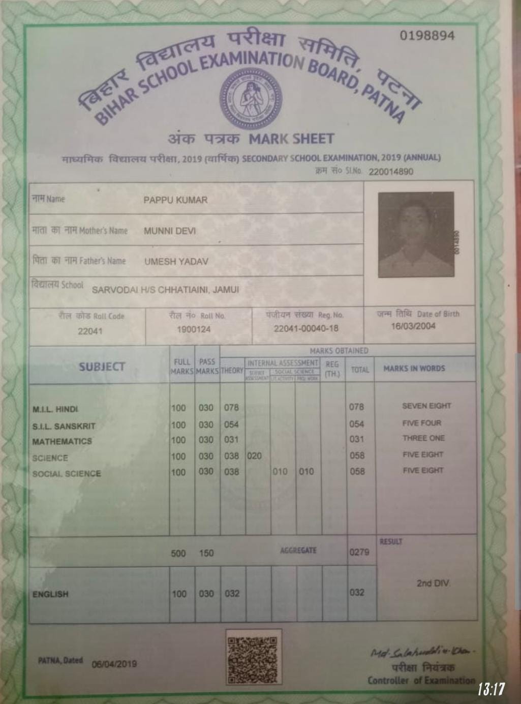 | Exam | Full Marks | Pass Marks | Marks Obtained |