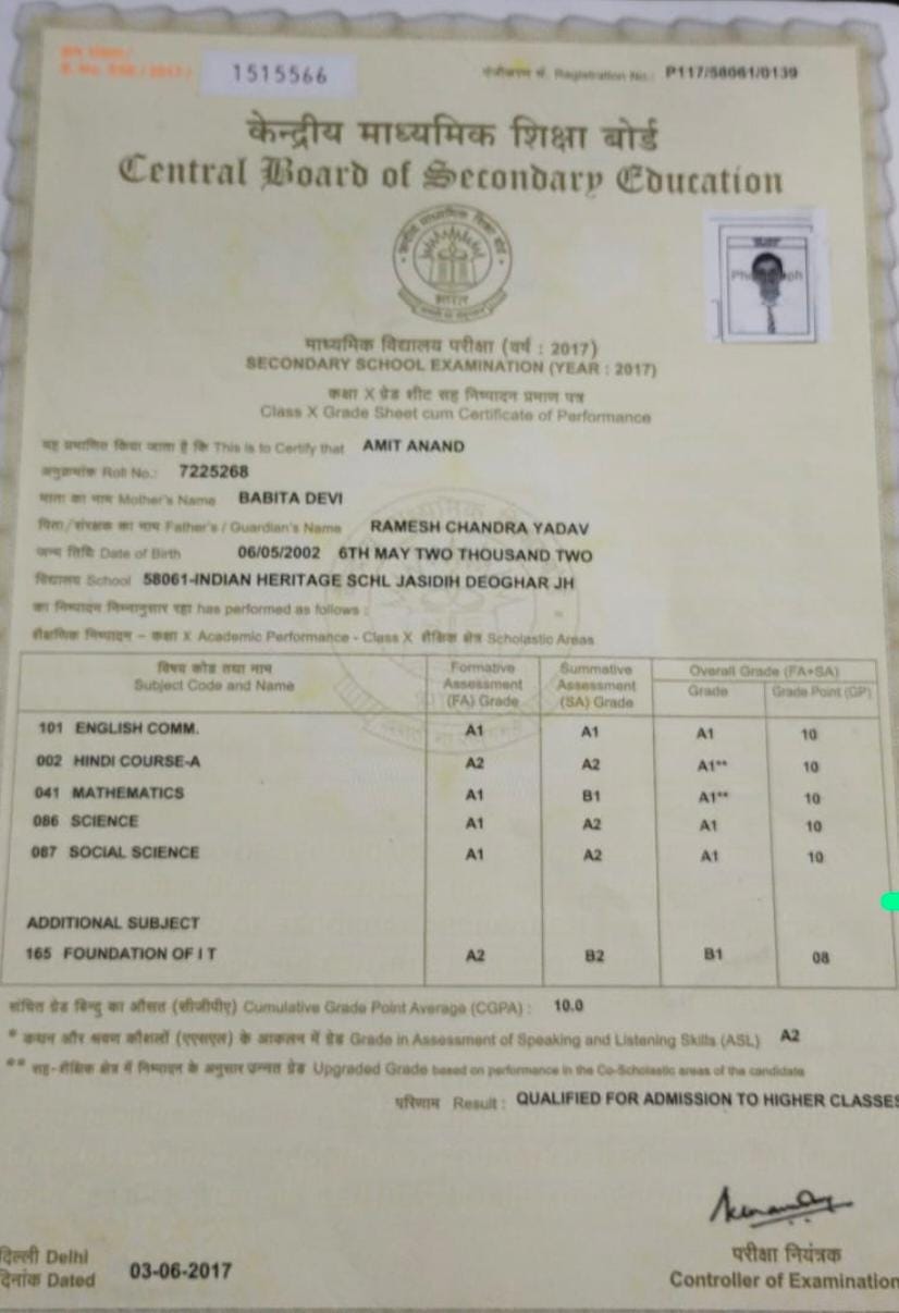 | Exam | Full Marks | Pass Marks | Marks Obtained |