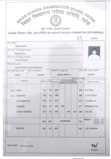 | Exam | Full Marks | Pass Marks | Marks Obtained |