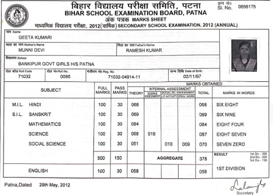 | Exam | Full Marks | Pass Marks | Marks Obtained |