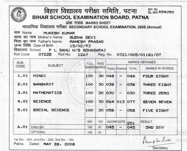 | Exam | Full Marks | Pass Marks | Marks Obtained |