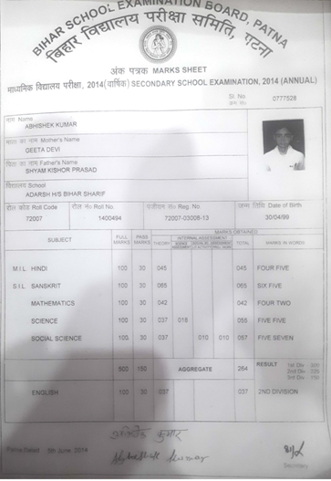 | Exam | Full Marks | Pass Marks | Marks Obtained |