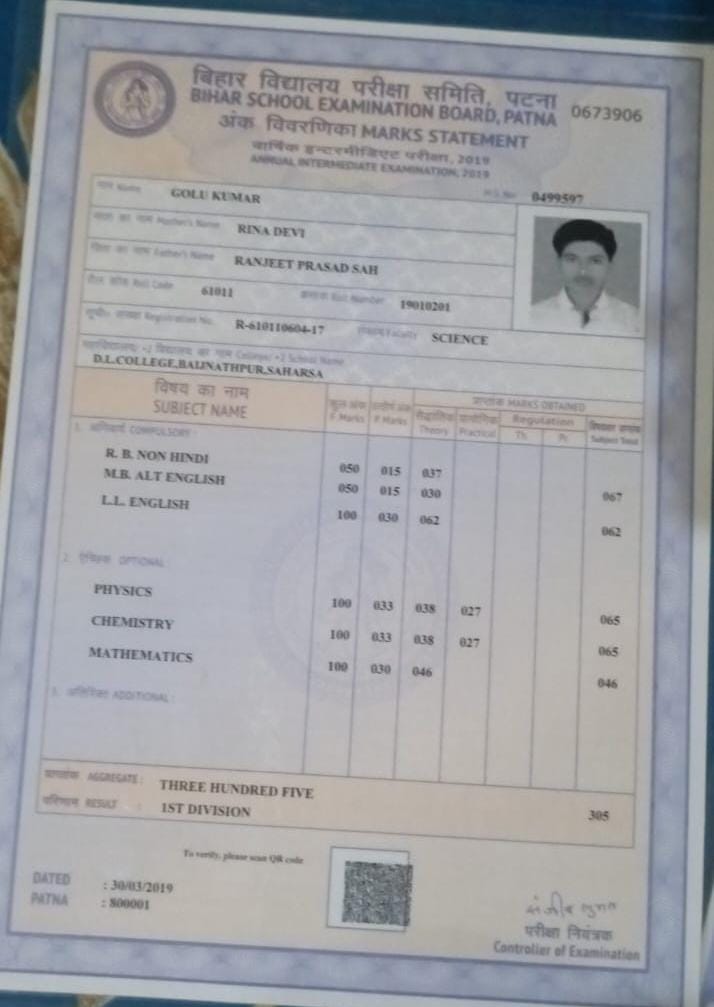 | Exam | Full Marks | Pass Marks | Marks Obtained |