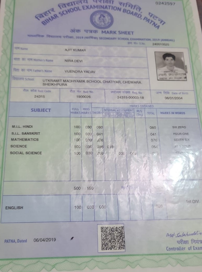 | Exam | Full Marks | Pass Marks | Marks Obtained |