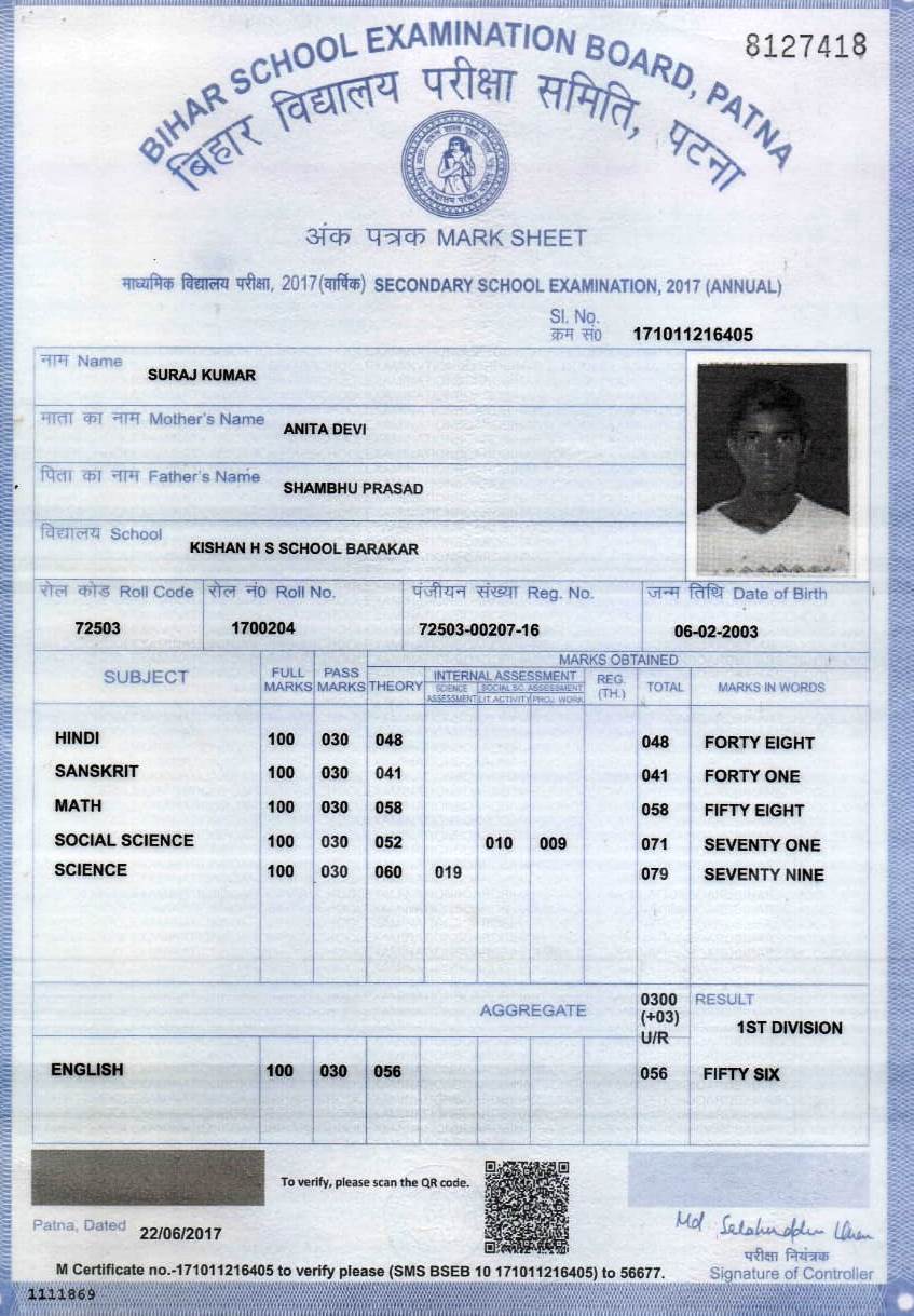 | Exam | Full Marks | Pass Marks | Marks Obtained |