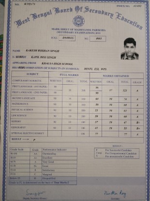 | Exam | Full Marks | Pass Marks | Marks Obtained |