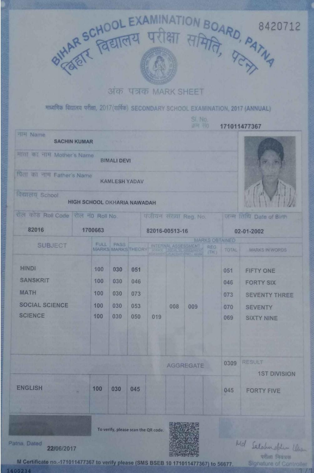 | Exam | Full Marks | Pass Marks | Marks Obtained |