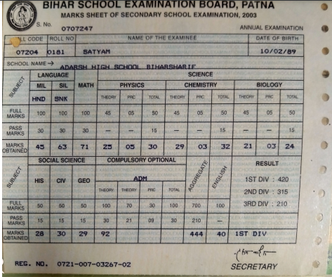 | Exam | Full Marks | Pass Marks | Marks Obtained |