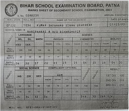 | Exam | Full Marks | Pass Marks | Marks Obtained |