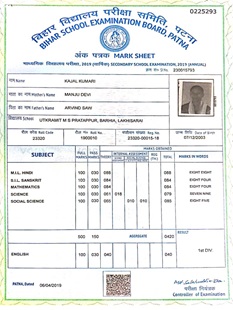 | Exam | Full Marks | Pass Marks | Marks Obtained |