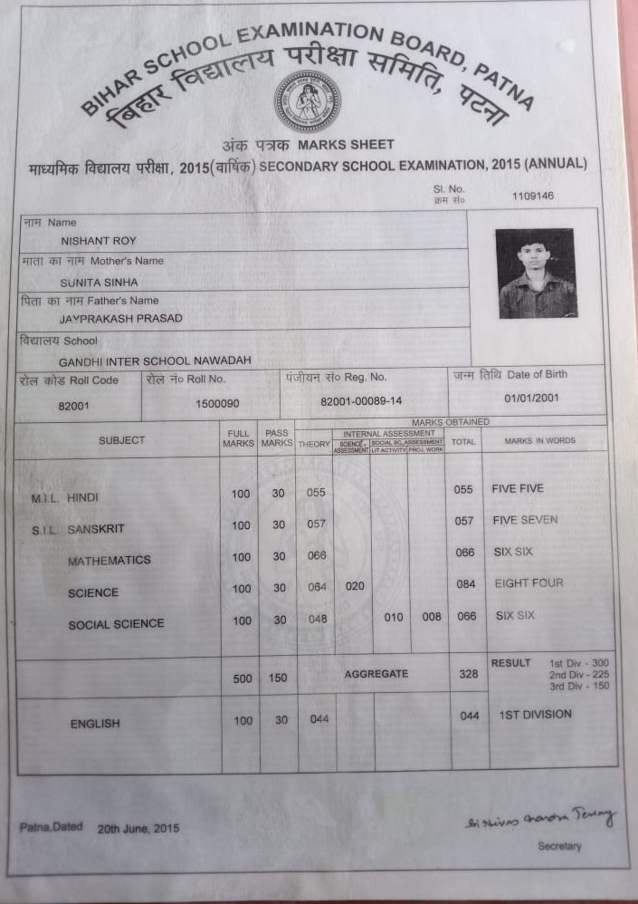| Exam | Full Marks | Pass Marks | Marks Obtained |