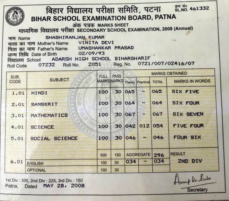 | Exam | Full Marks | Pass Marks | Marks Obtained |