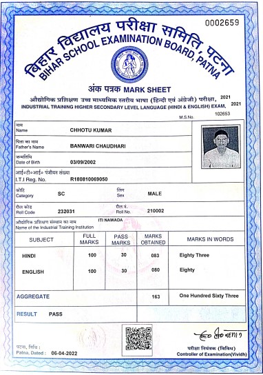 | Exam | Full Marks | Pass Marks | Marks Obtained |