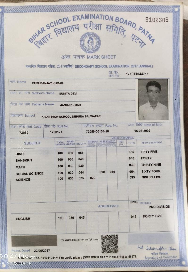 | Exam | Full Marks | Pass Marks | Marks Obtained |