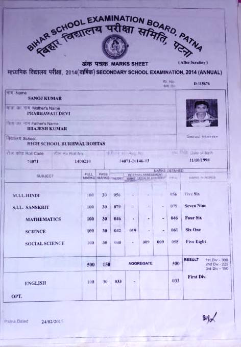 | Exam | Full Marks | Pass Marks | Marks Obtained |