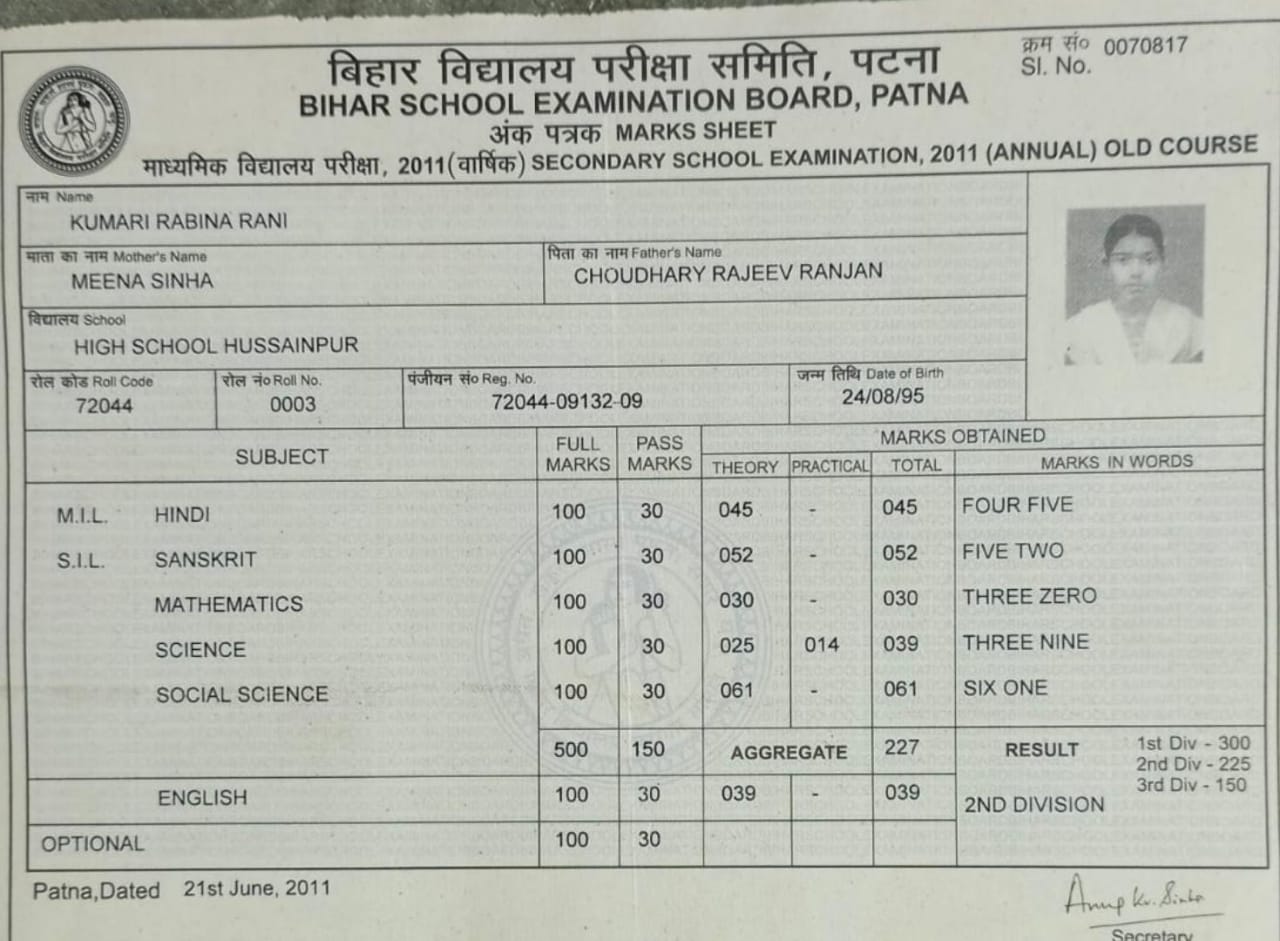 | Exam | Full Marks | Pass Marks | Marks Obtained |