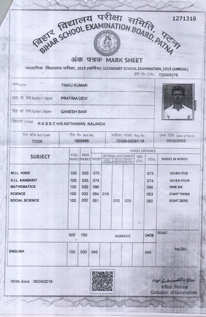 | Exam | Full Marks | Pass Marks | Marks Obtained |