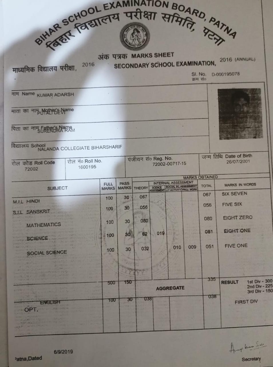 | Exam | Full Marks | Pass Marks | Marks Obtained |
