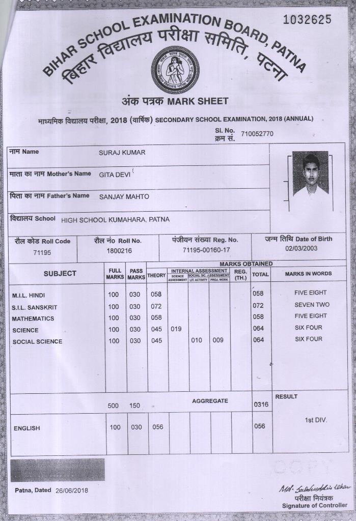 | Exam | Full Marks | Pass Marks | Marks Obtained |