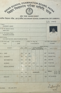| Exam | Full Marks | Pass Marks | Marks Obtained |