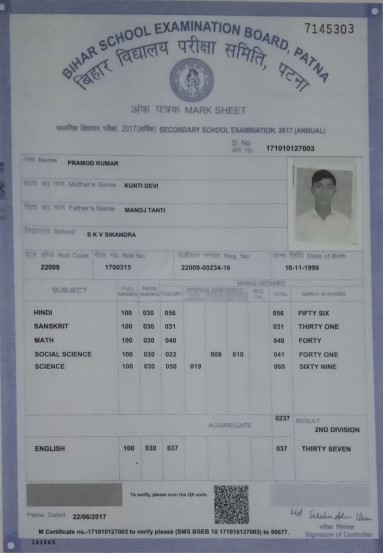 | Exam | Full Marks | Pass Marks | Marks Obtained |
