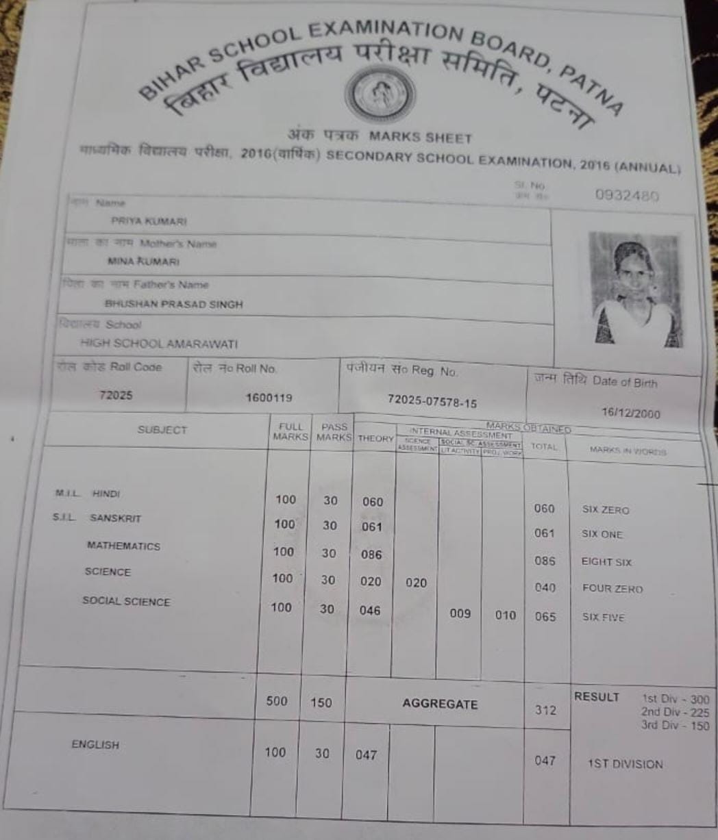 | Exam | Full Marks | Pass Marks | Marks Obtained |