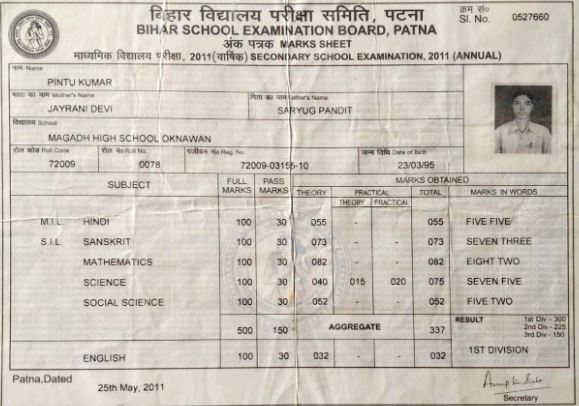 | Exam | Full Marks | Pass Marks | Marks Obtained |