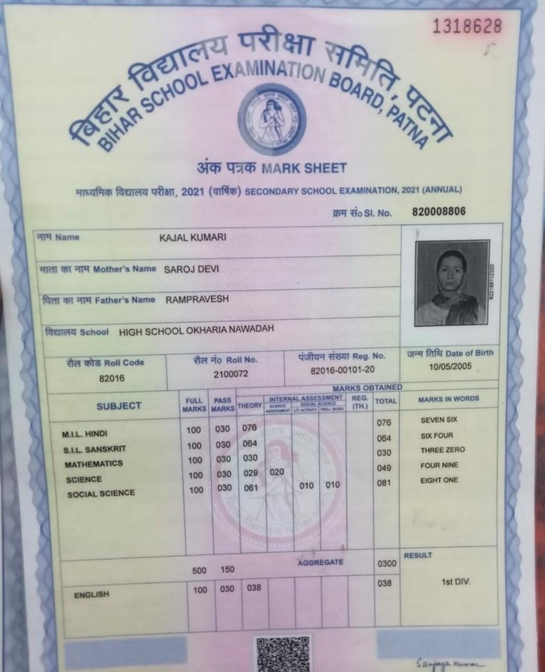 | Exam | Full Marks | Pass Marks | Marks Obtained |