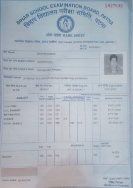 | Exam | Full Marks | Pass Marks | Marks Obtained |