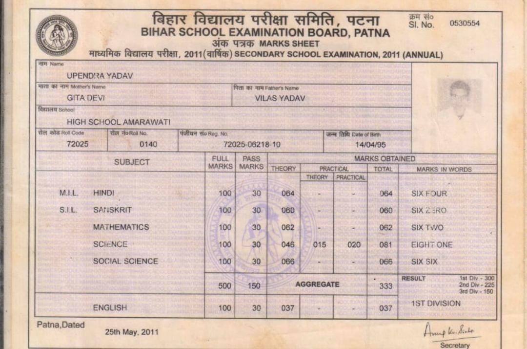 | Exam | Full Marks | Pass Marks | Marks Obtained |