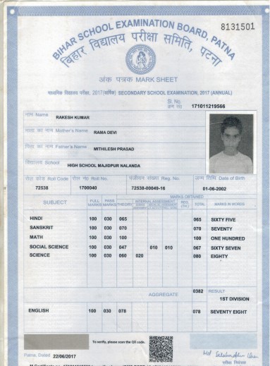 | Exam | Full Marks | Pass Marks | Marks Obtained |