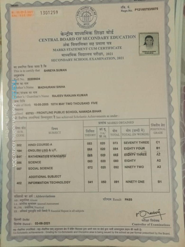 | Exam | Full Marks | Pass Marks | Marks Obtained |